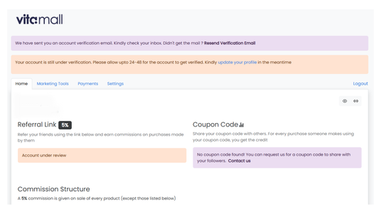 If you have any questions or encounter issues, please contact our affiliate support team at support@vitamall.com.